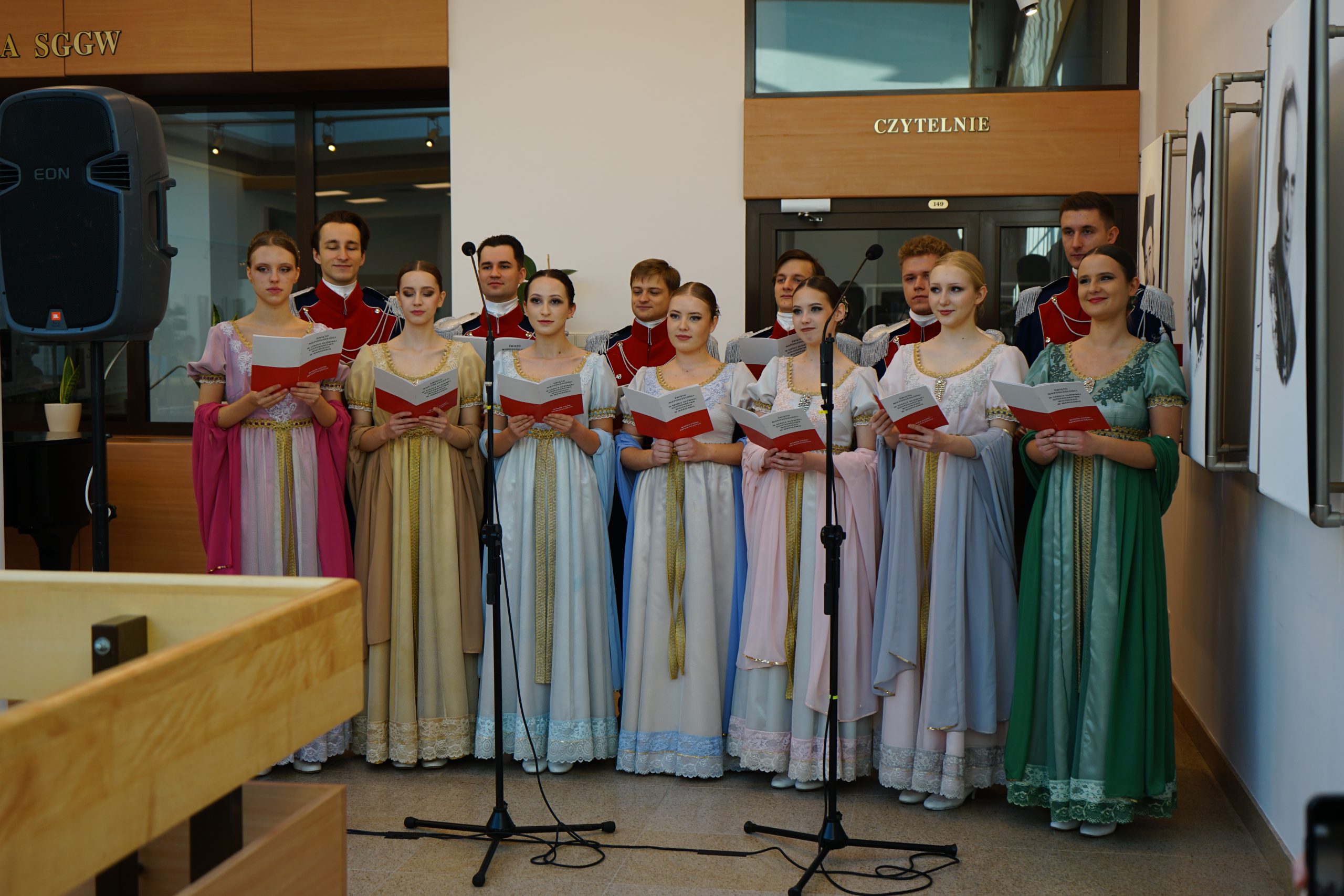 W drugiej części uroczystości społeczność akademicka spotkała się w holu Muzeum SGGW, gdzie wspólnie śpiewano pieśni patriotyczne z towarzyszeniem Ludowego Zespołu Artystycznego „PROMNI”.