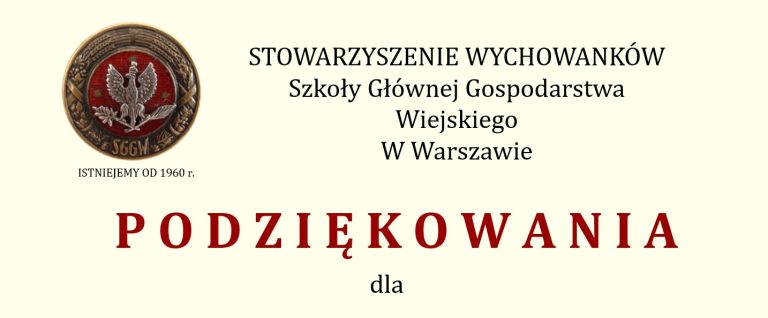 Serdeczne podziękowania dla wszystkich Uczestników Jubileuszowego Zjazdu Stowarzyszenia Wychowanków SGGW za stworzenie wspaniałej atmosfery spotkania, uśmiech, życzliwość i aktywny udział.